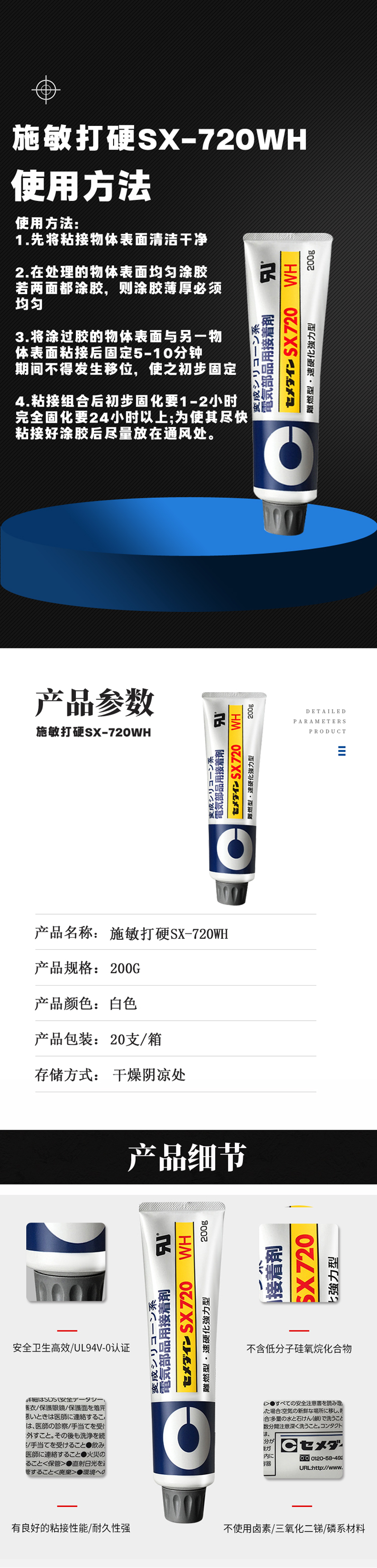 进口日本施敏打硬SX-720WH高粘度高强度胶喇叭胶阻燃胶水原装正品
