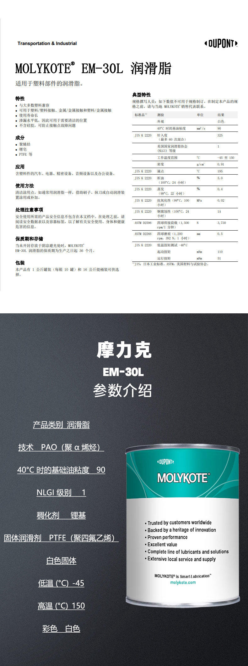 MOLYKOTE EM-30L润滑脂
