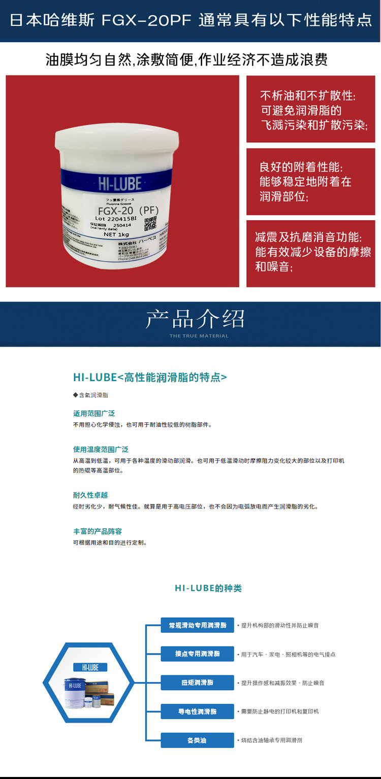 - 可解决传统润滑脂的一些问题:如具有优异的不析油和不扩散性,能解决飞溅污染、扩散污染及涂敷困难等问题,油膜均匀自然,涂敷简便,作业经济不造成浪费;